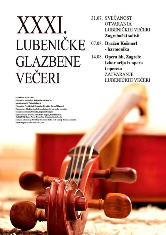 Na programu su djela Bacha, Runčaka, Bobića, Brajkovića, Piazzolle, a koncert je na rasporedu u petak 7. kolovoza 2020. s početkom u 21 sat u posebnom ambijentu grada Lubenice na otoku Cresu.
