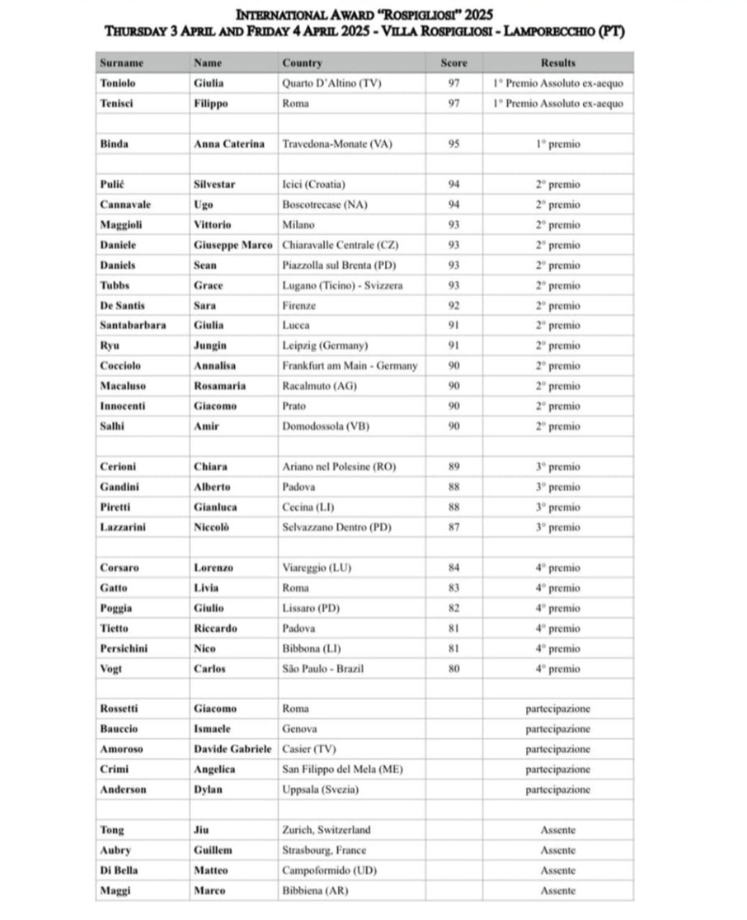 Student Silvestar Pulić osvojio je 2. nagradu u jakoj konkurenciji pijanista iz cijele Europe na međunarodnom pijanističkom natjecanju International Award "Rospigliosi" 2025. u Lamporecchiu u Italiji. Čestitke!