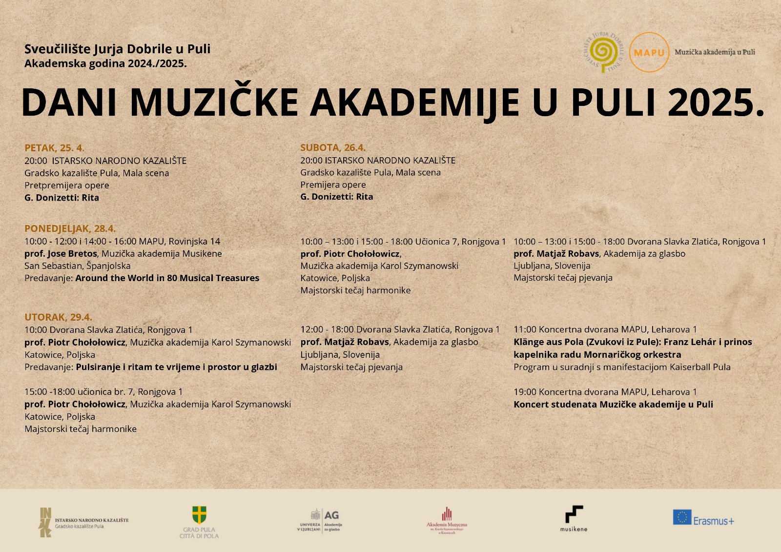 Pozivamo Vas na Dane Muzičke akademije 2025., koji će se održati od 25. do 29. travnja 2025. Detaljan program možete pročitati ispod.