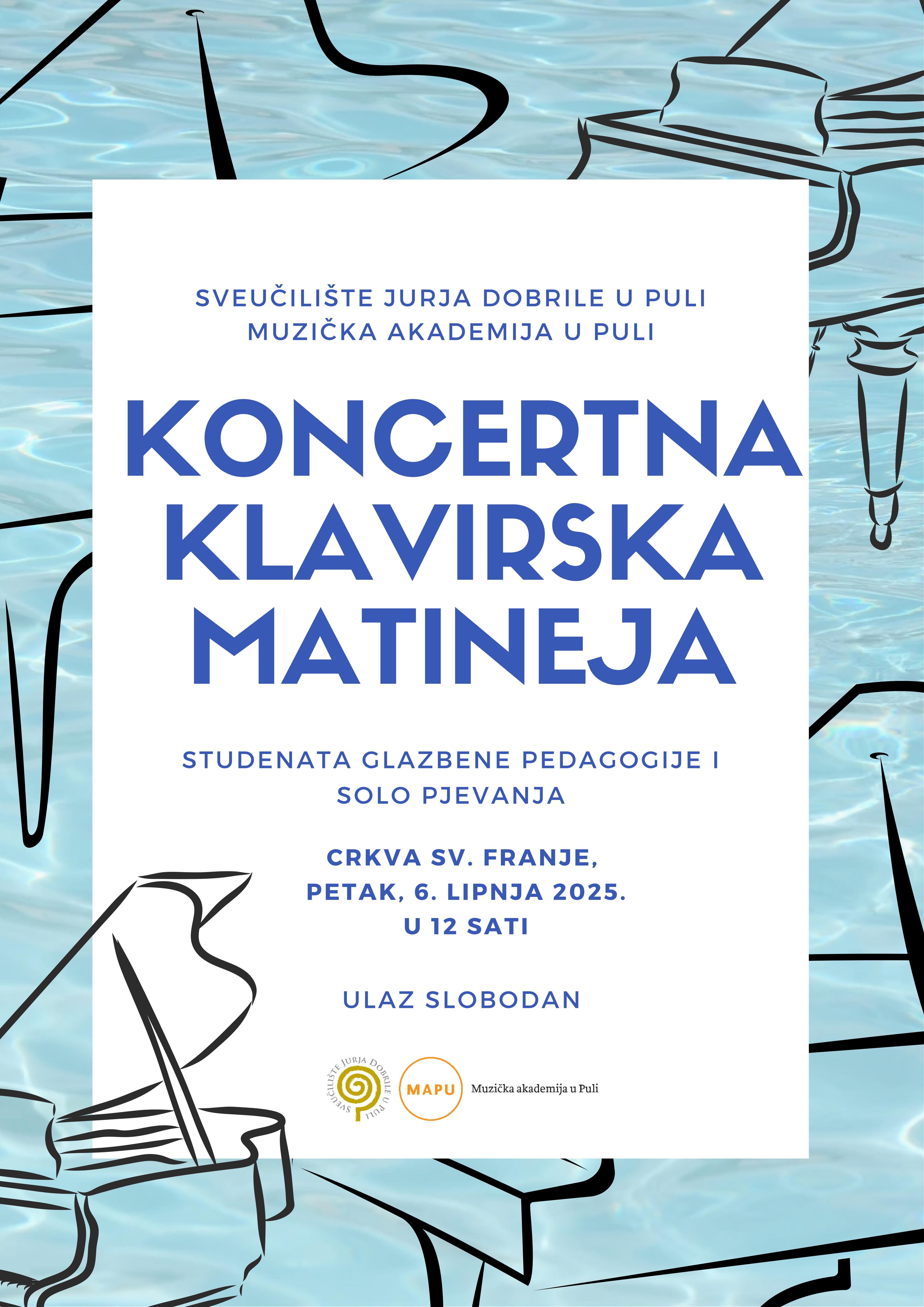 U petak, 6. lipnja s početkom u 12 sati, u crkvi sv. Franje održava se tradicionalna Koncertna klavirska matineja studenata Glazbene pedagogije i Solo pjevanja.