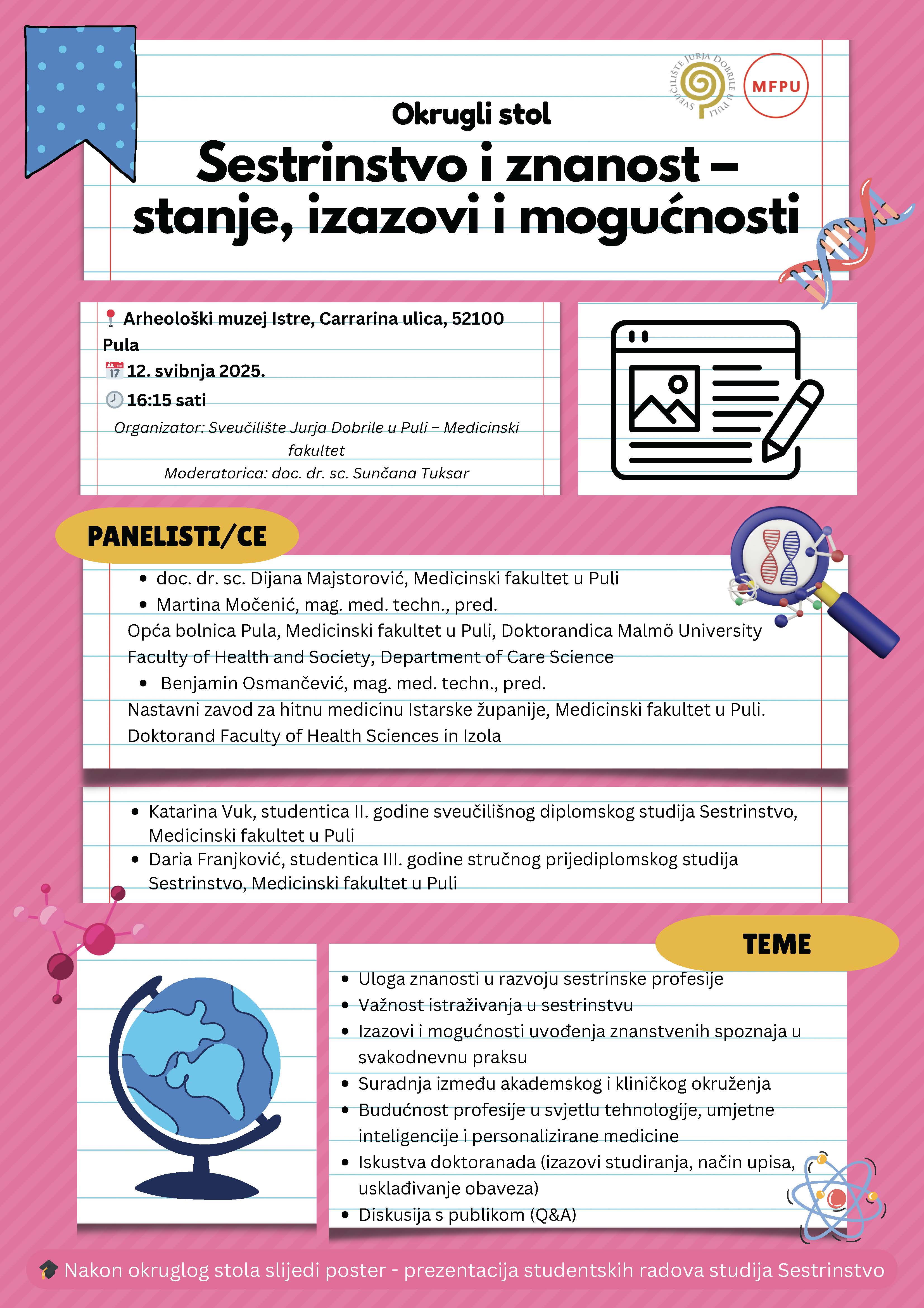 16:15 – Okrugli stol: „Sestrinstvo i znanost – stanje, izazovi i mogućnosti“